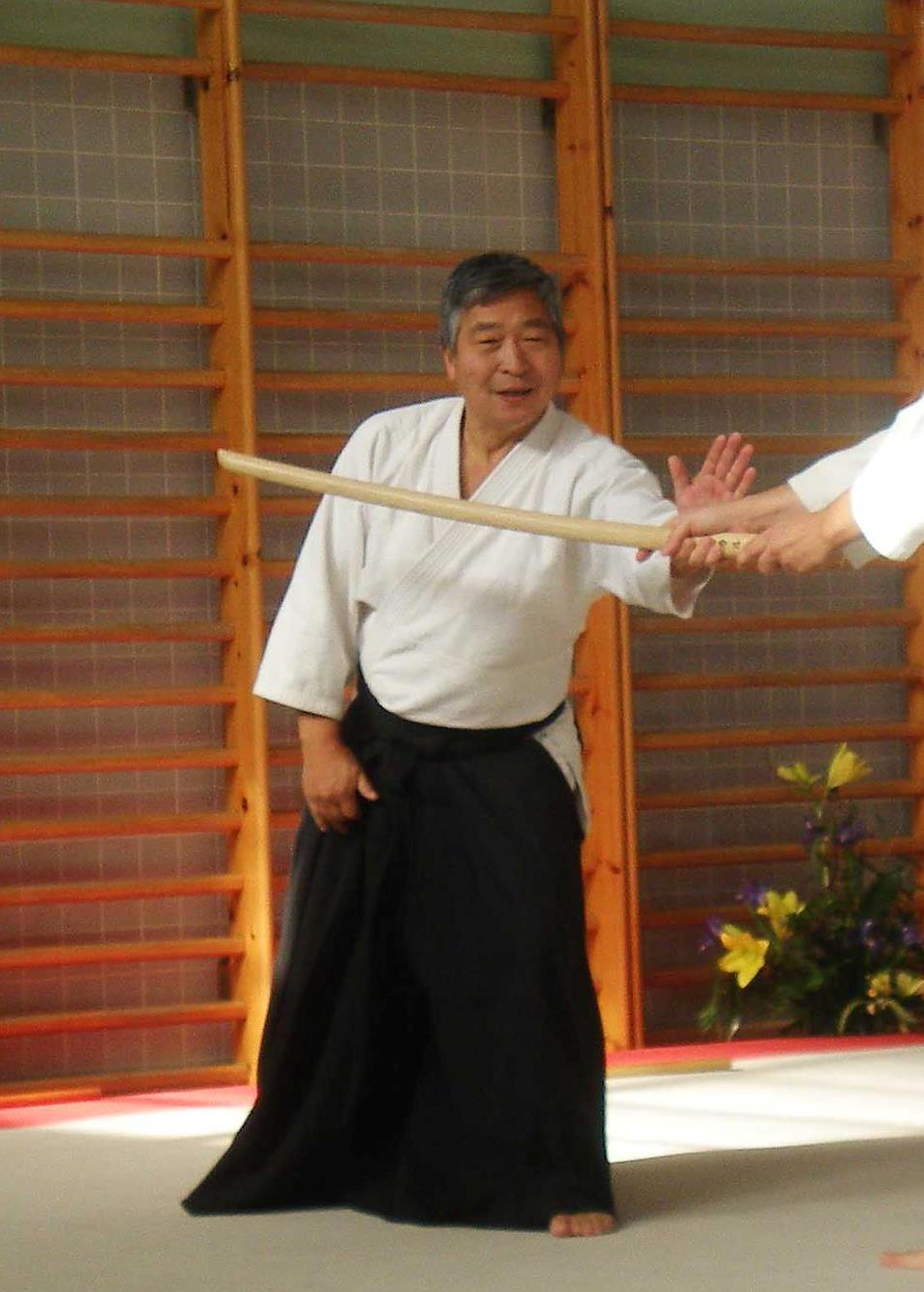 "En Aikido es necesario tener una mentalidad de servicio a la paz entre todos los seres humanos, y no el deseo de ser fuertes o practicar solamente para derribar al adversario"